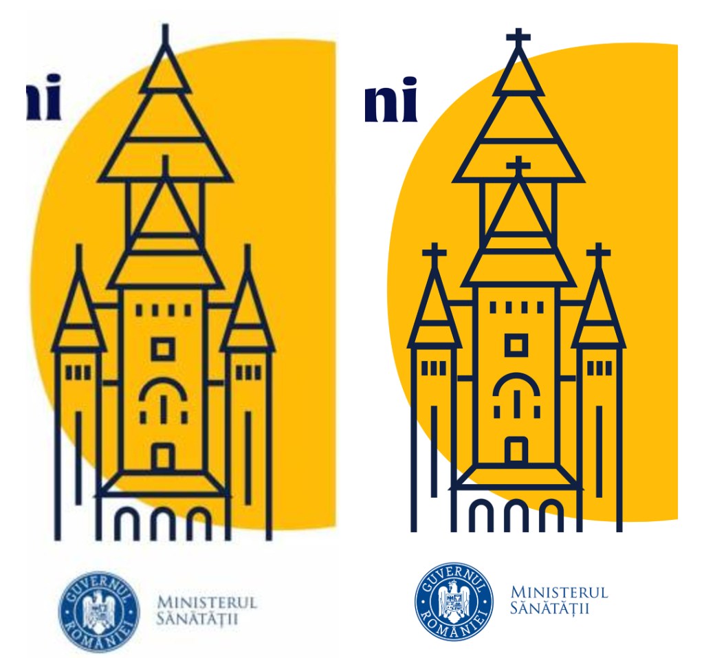 Astfel, într-un afiș pentru promovarea vaccinării, se folosește imaginea stilizată a Catedralei Mitropolitane din Timișoara, fără… cruci.( Mutilări grafice similare a mai suferit lăcașul de cult în 2017 și 2020, în contexte diferite.)