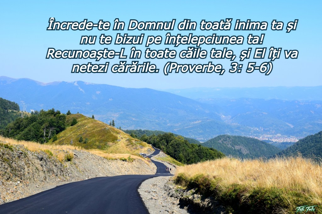 Încrede-te în Domnul din toată inima ta și nu te bizui pe înțelepciunea ta! Recunoaște-L în toate căile tale, și El îți va netezi cărările. (Proverbe, 3: 5-6)