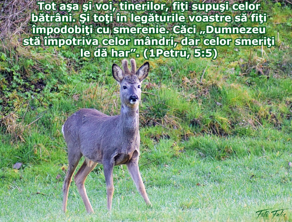 Tot aşa şi voi, tinerilor, fiţi supuşi celor bătrâni. Şi toţi în legăturile voastre să fiţi împodobiţi cu smerenie. Căci „Dumnezeu stă împotriva celor mândri, dar celor smeriţi le dă har”. (1 Petru, 5:5)