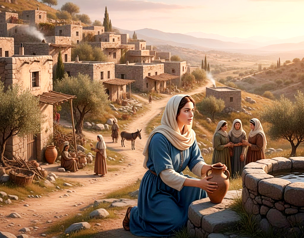 Îmi las gândurile să coboare, urmându-le într-un alt prezent, pe potecile înguste din ținutul muntos al Galileii de Jos, spre satul din vale care pare ațipit. Aproape de drumul comercial care leagă Marea Mediterană de Siria, dar fără să fie atins de acesta, satul este legat printr-un drum de șase kilometri de Sepphoris, cel mai apropiat oraș. Acesta este Nazaretul de la începutul secolului întâi, trăidu-și tihna în umbra teraselor cu măslini și vii de pe culmile care-l înconjoară protector.