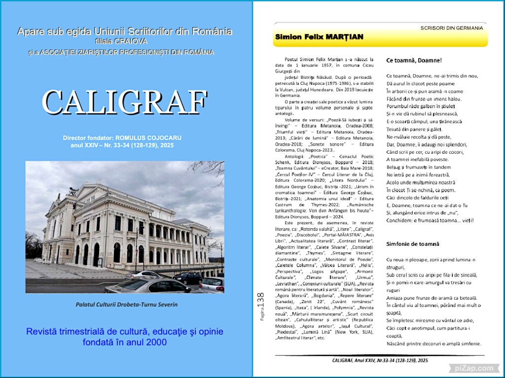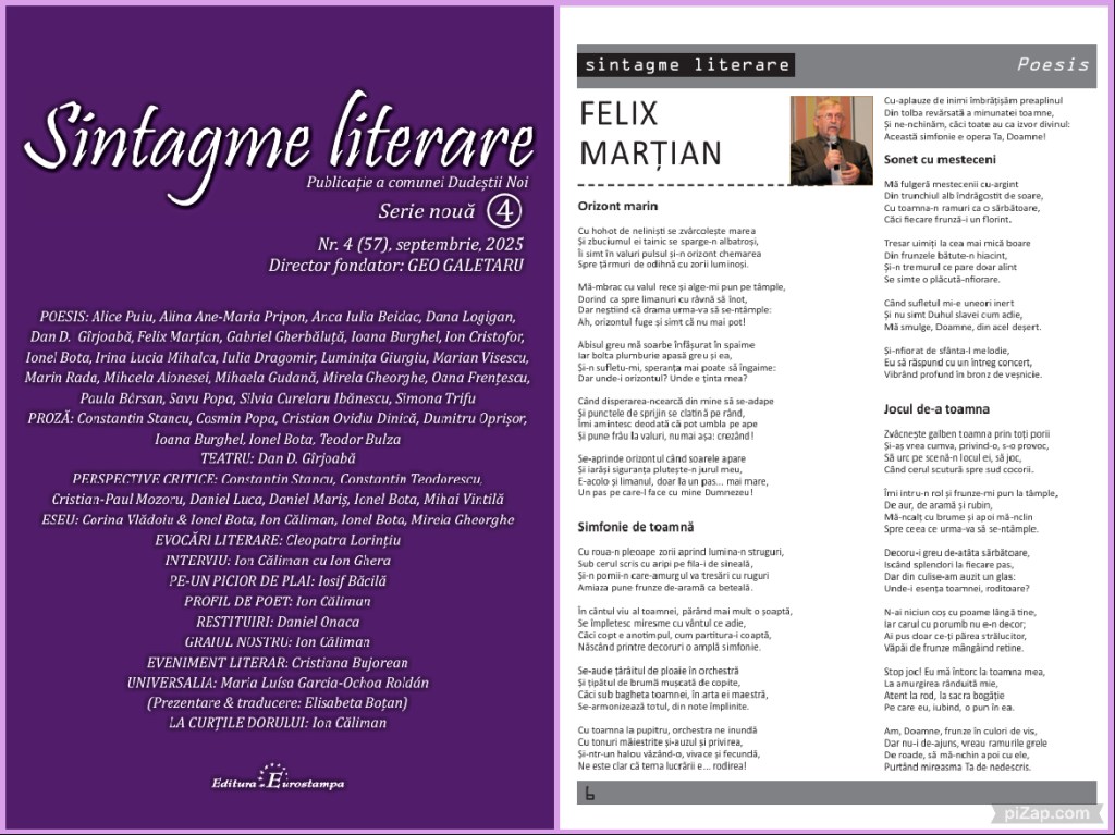 În reviste literare – 2025 27 decembrie 2025sfmartian Răspândește asta: Dă clic pentru a partaja pe X(Se deschide într-o fereastră nouă) X Dă clic pentru a partaja pe Facebook(Se deschide într-o fereastră nouă) Facebook Apreciază Încarc...