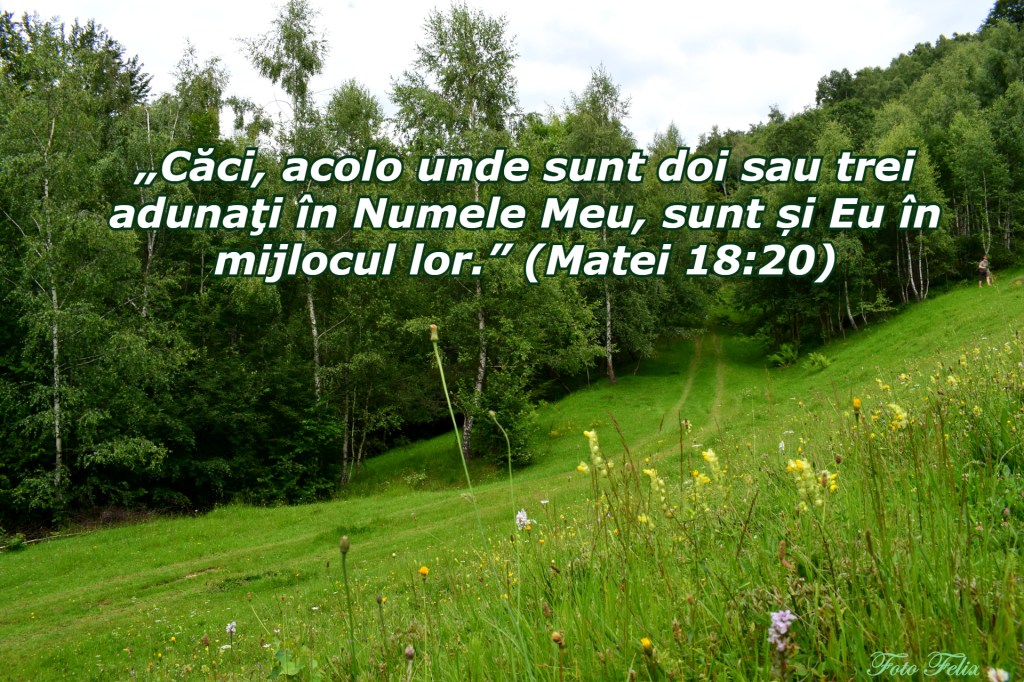 „Căci, acolo unde sunt doi sau trei adunaţi în Numele Meu, sunt și Eu în mijlocul lor.” (Matei 18:20)